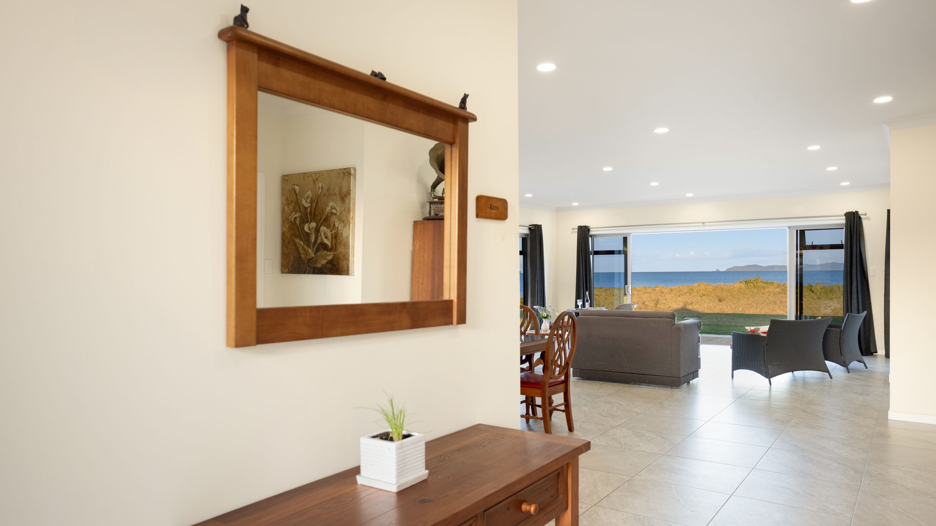 The position is the show-stopper. Elevated for outlook and peace of mind, yet flat, usable and remarkably private, it gives you room for gardens, games, future additions, possible subdivision or an additional dwelling. Step off the lawn and onto kilometres of sand for morning swims, evening walks, surf casting and effortless summer hosting. A beachfront estate with presence, practicality and potential—rare in any market, rarer still here. LIM Report available upon request.