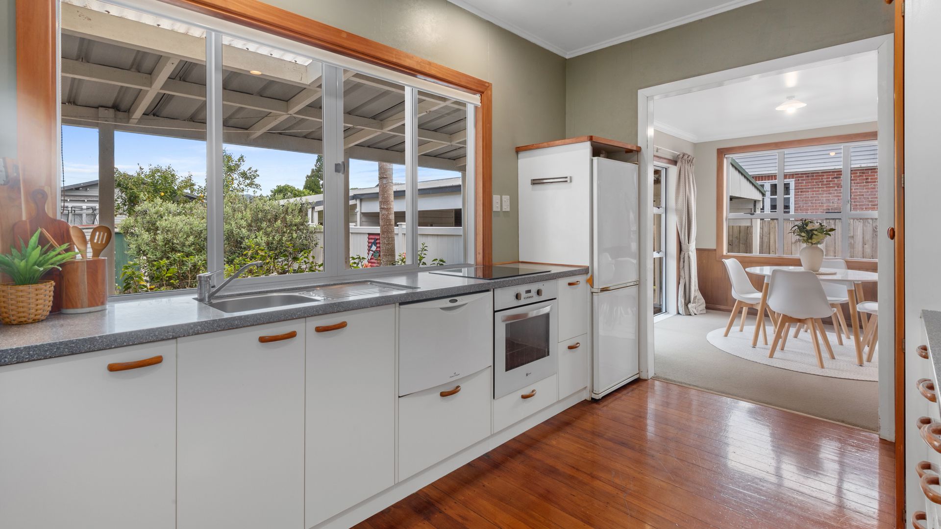Set in a family-friendly pocket of Kensington with a leafy outlook to Parihaka, this well-kept 1930s classic blends native-timber quality with light, open interiors. A sun-filled bay-window lounge connects to dining and a tidy galley kitchen. Two bedrooms anchor the home, while a separate sleepout adds flexible space for guests, work or hobbies.