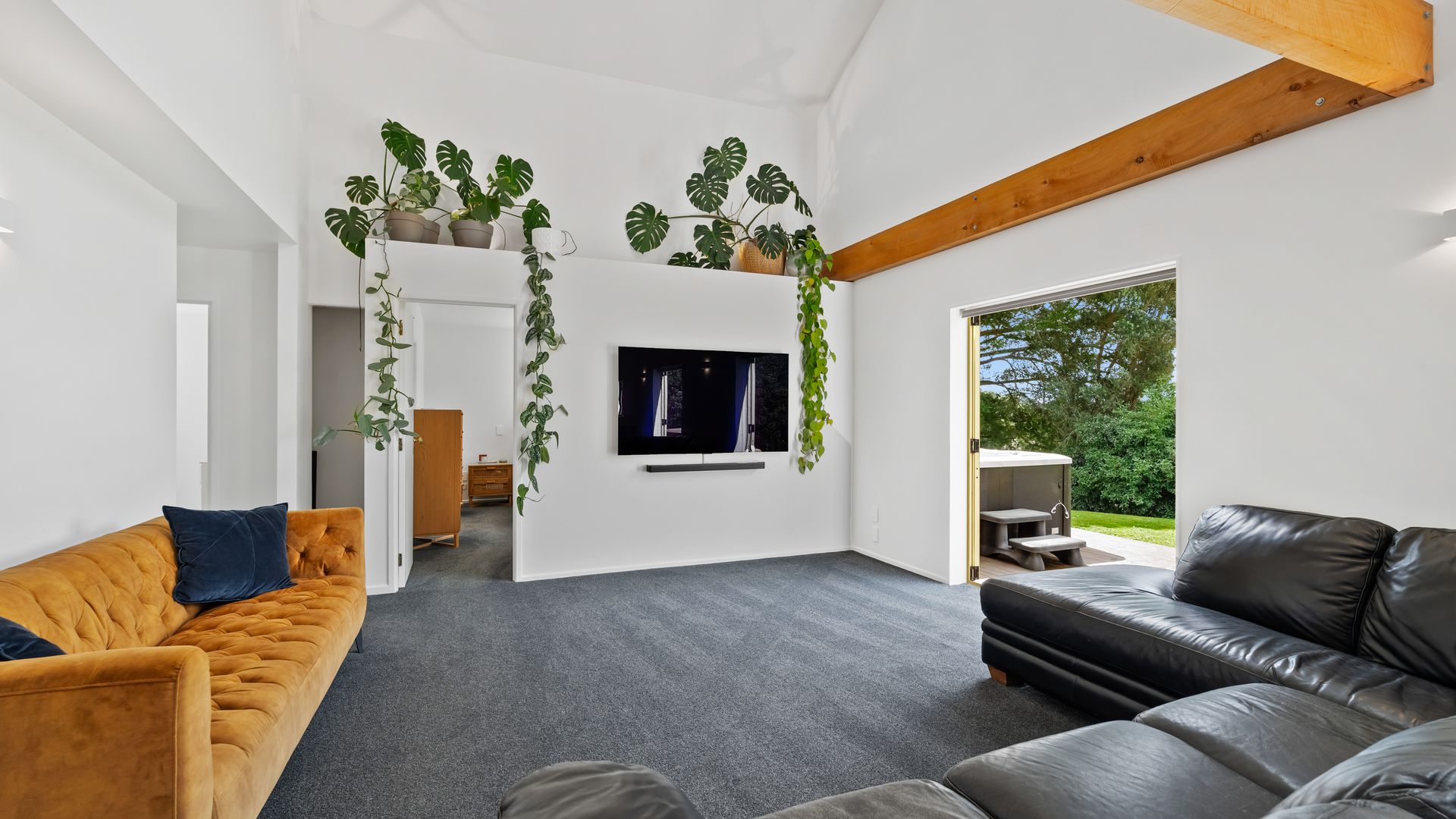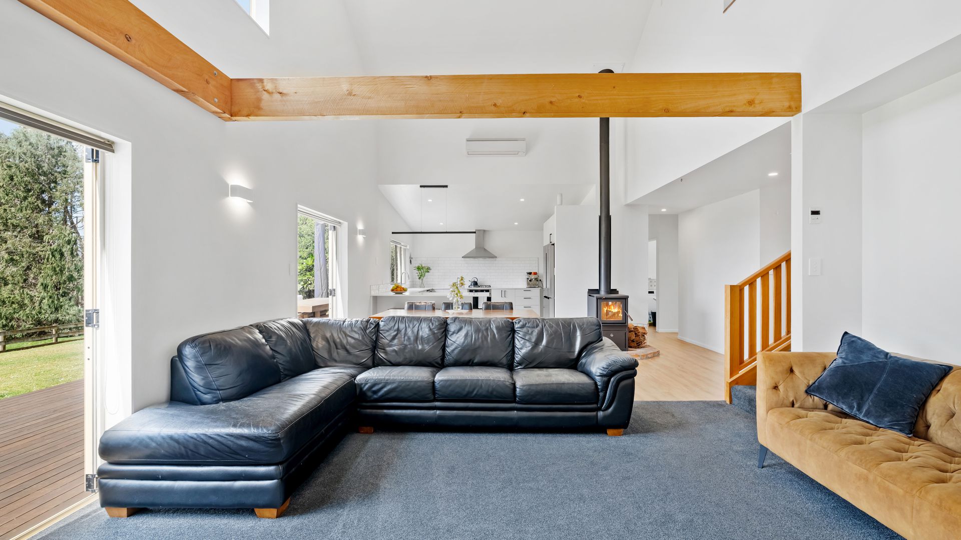 Whangarei country living - without the long commute. Located midway between Maunu and Kamo, this modern barn-style haven pairs everyday ease with a gorgeous outlook. Inside, soaring ceilings with warm timber beams create a dramatic central living zone, anchored by a sleek white kitchen with a generous breakfast bar, quality appliances and effortless flow to open plan lounge and dining area. Throw the doors wide and life shifts outdoors: a sheltered patio for year-round BBQs that doubles as a car port, a sun-soaked deck for long lunches, and a spa spot to watch the hills fade into evening.