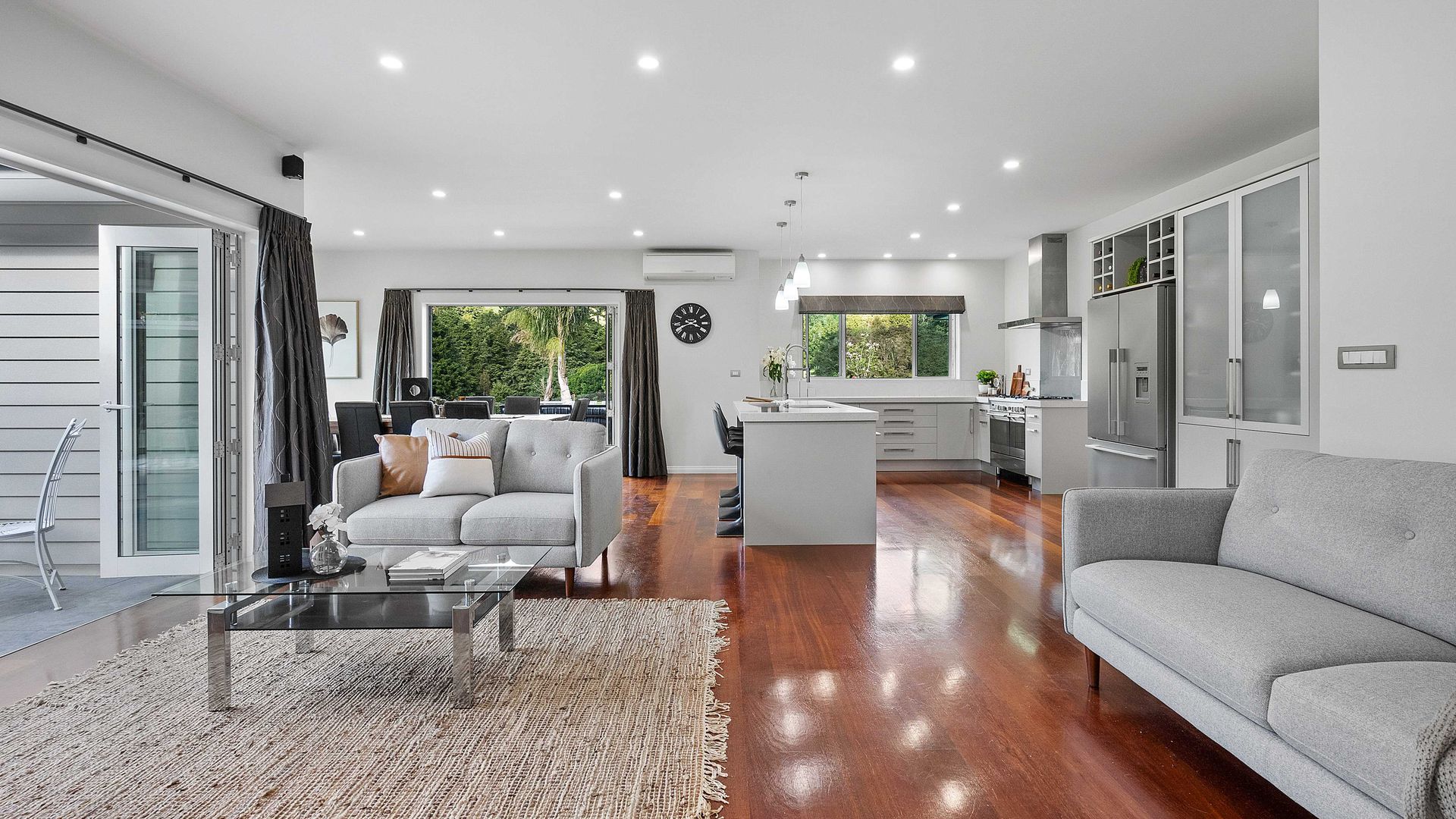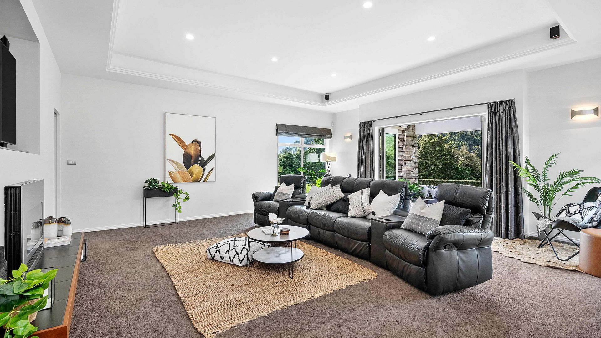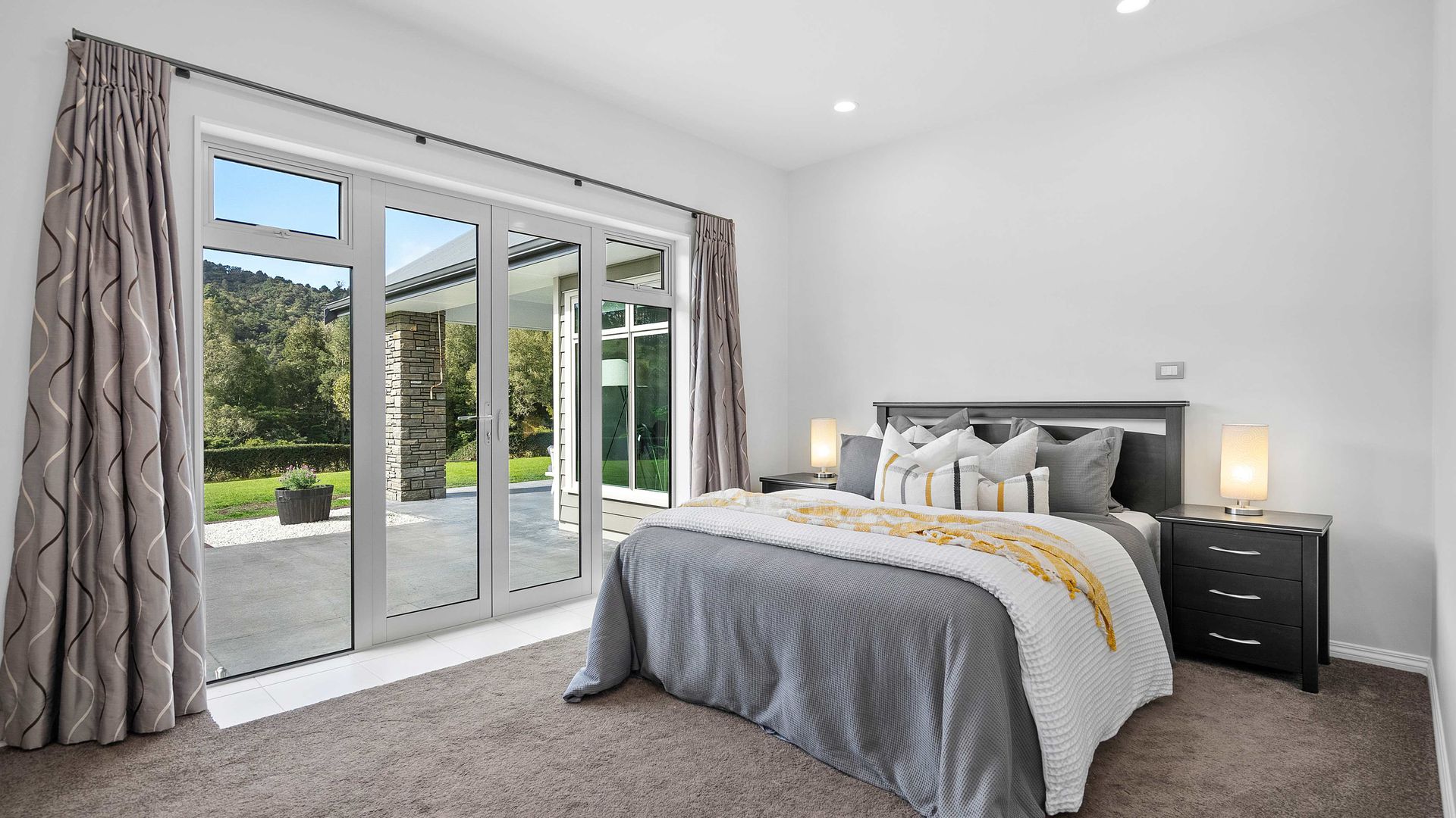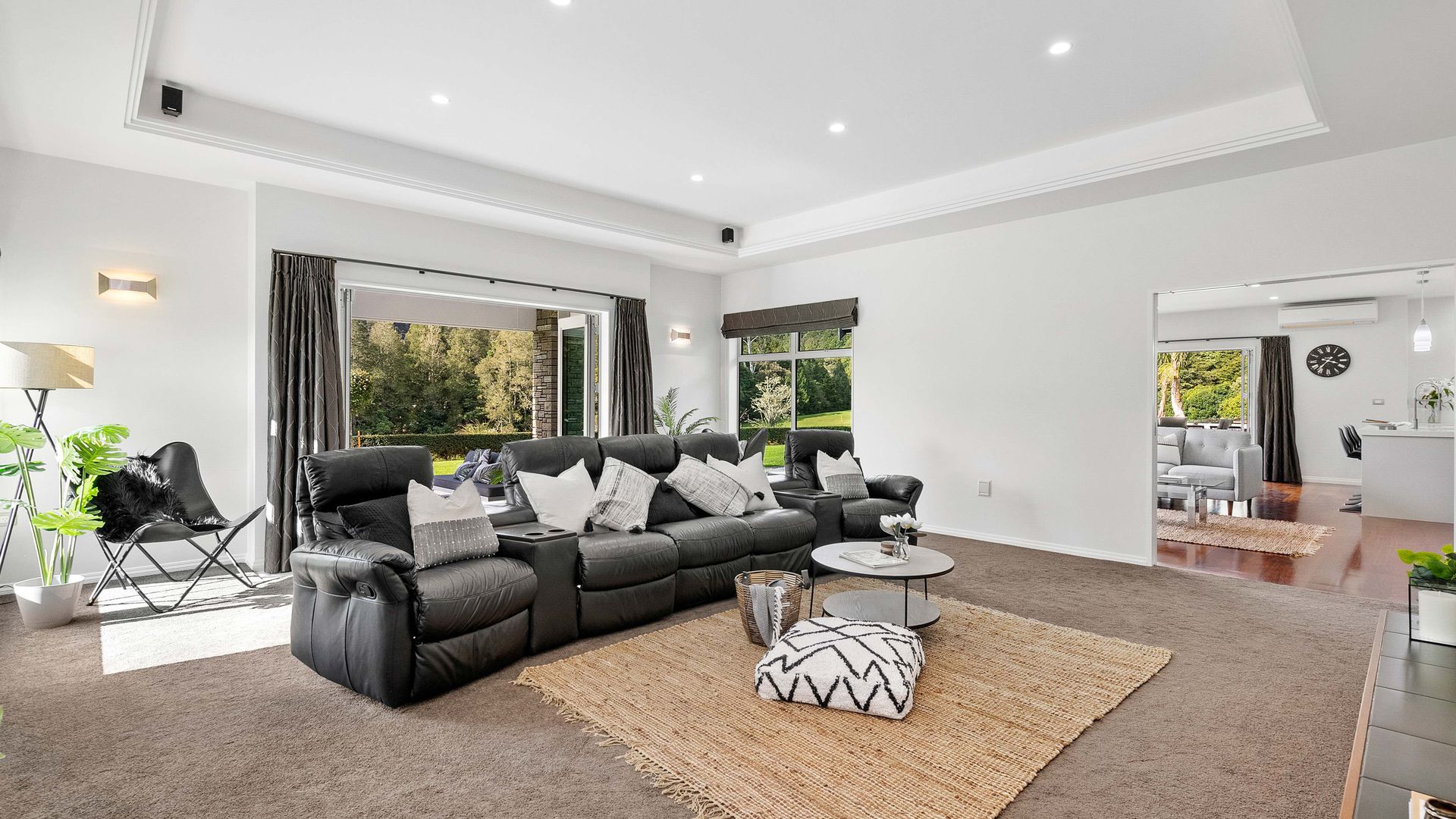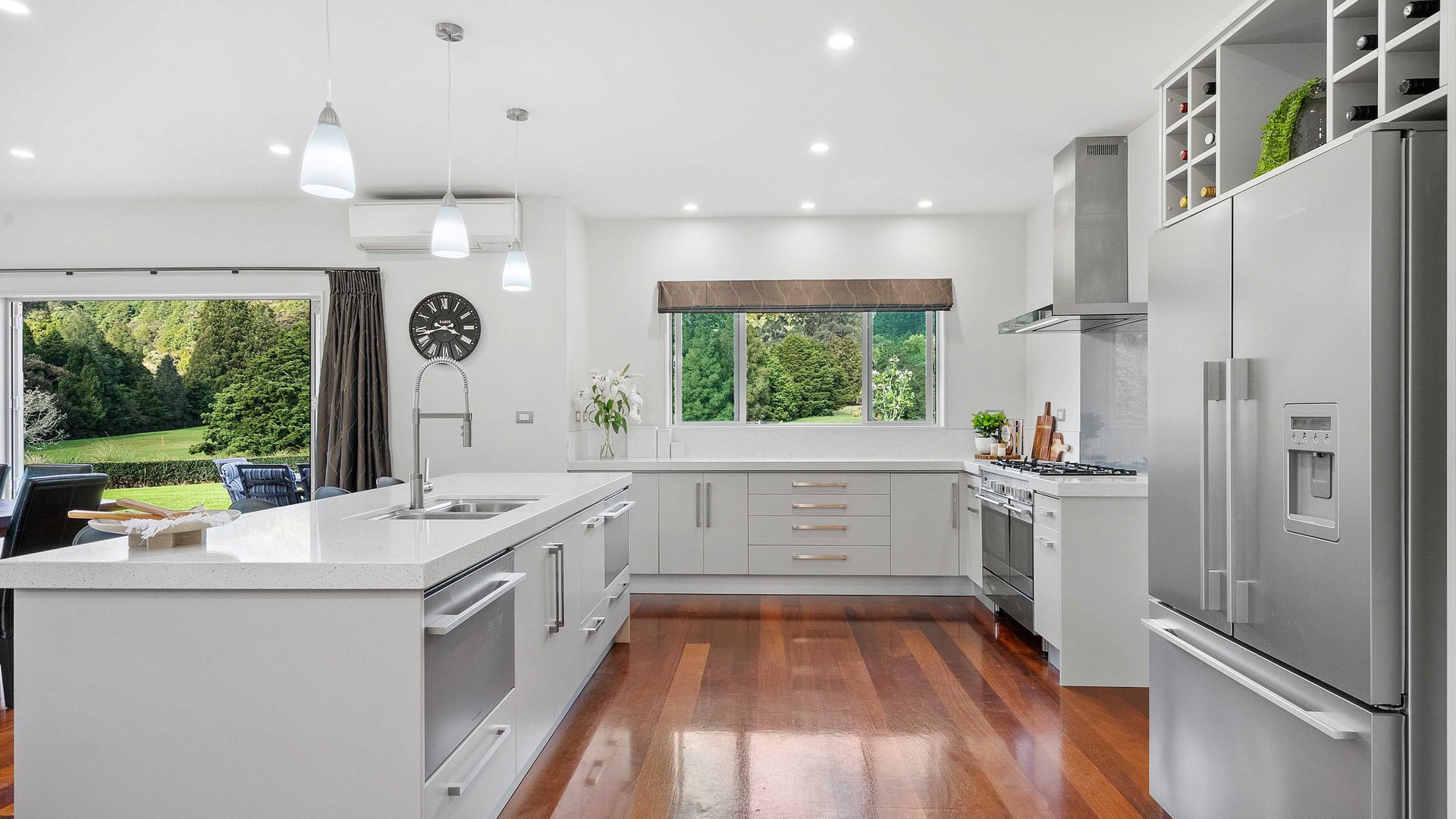 In the Kara Sanctuary at Maungatapere, this five-bedroom residence delivers resort calm with rural freedom. A crisp, entertainer’s kitchen with scullery anchors generous open living and bi-folds open to a stone-pillared loggia and broad patios that invite you outdoors. Light, volume and long green views set the tone for everyday ease and celebration-grade gatherings.