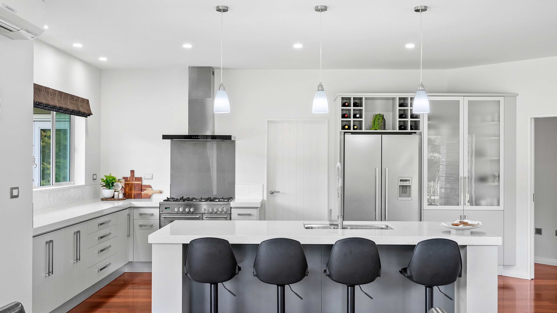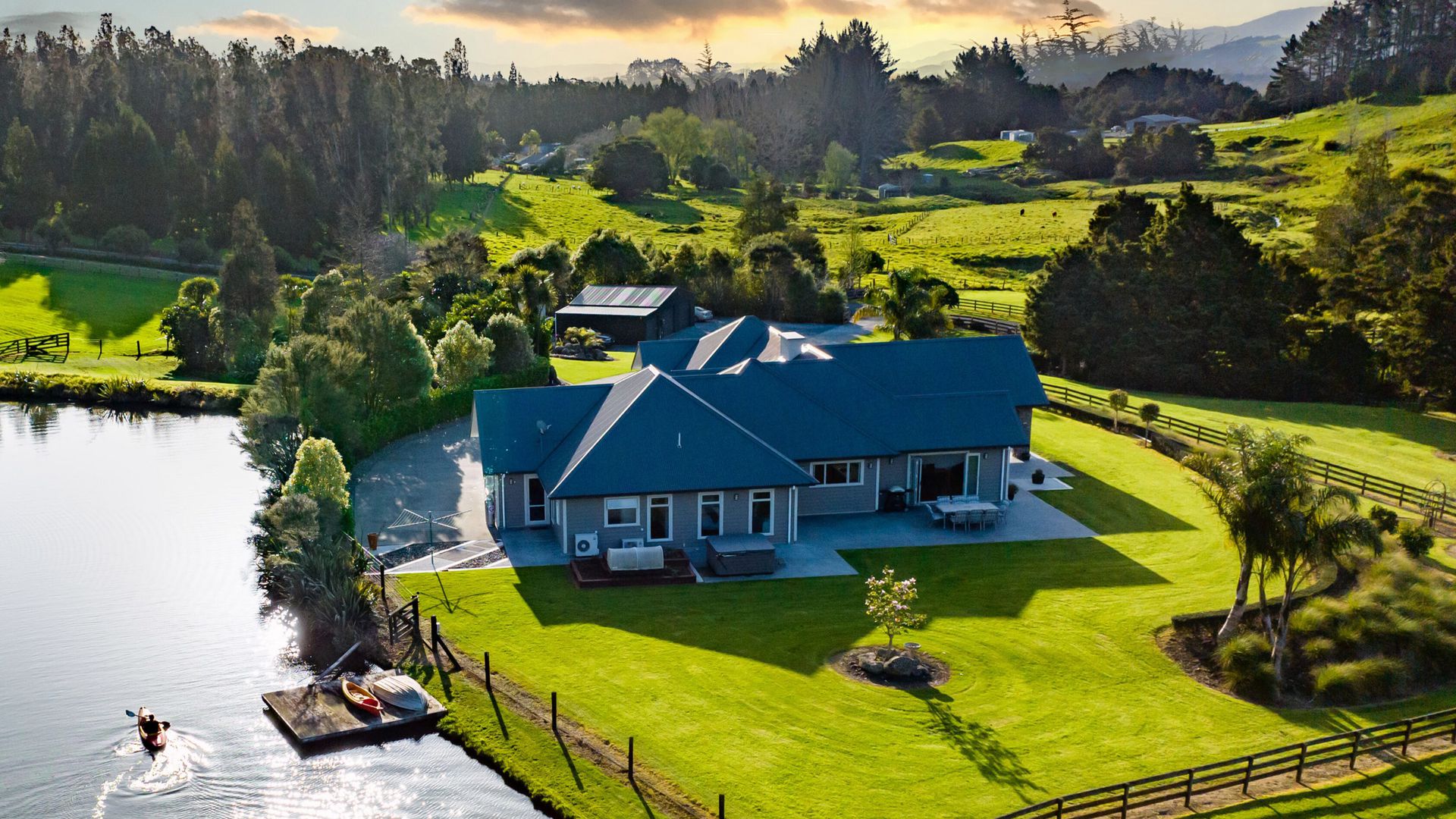 A separate three-bay shed takes care of the boat, the toys and the projects without stealing the show. Schools, services and city access are close enough for convenience, yet the sanctuary setting keeps life quiet and secure.