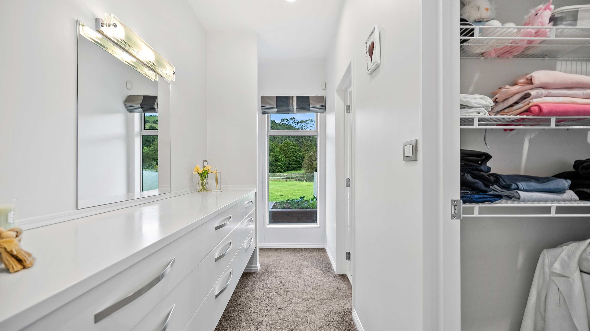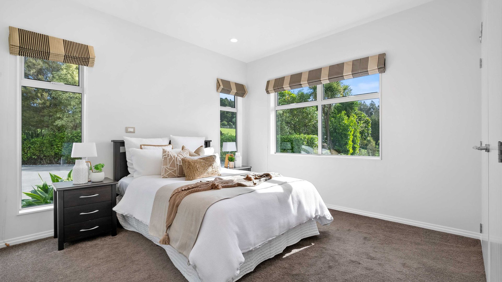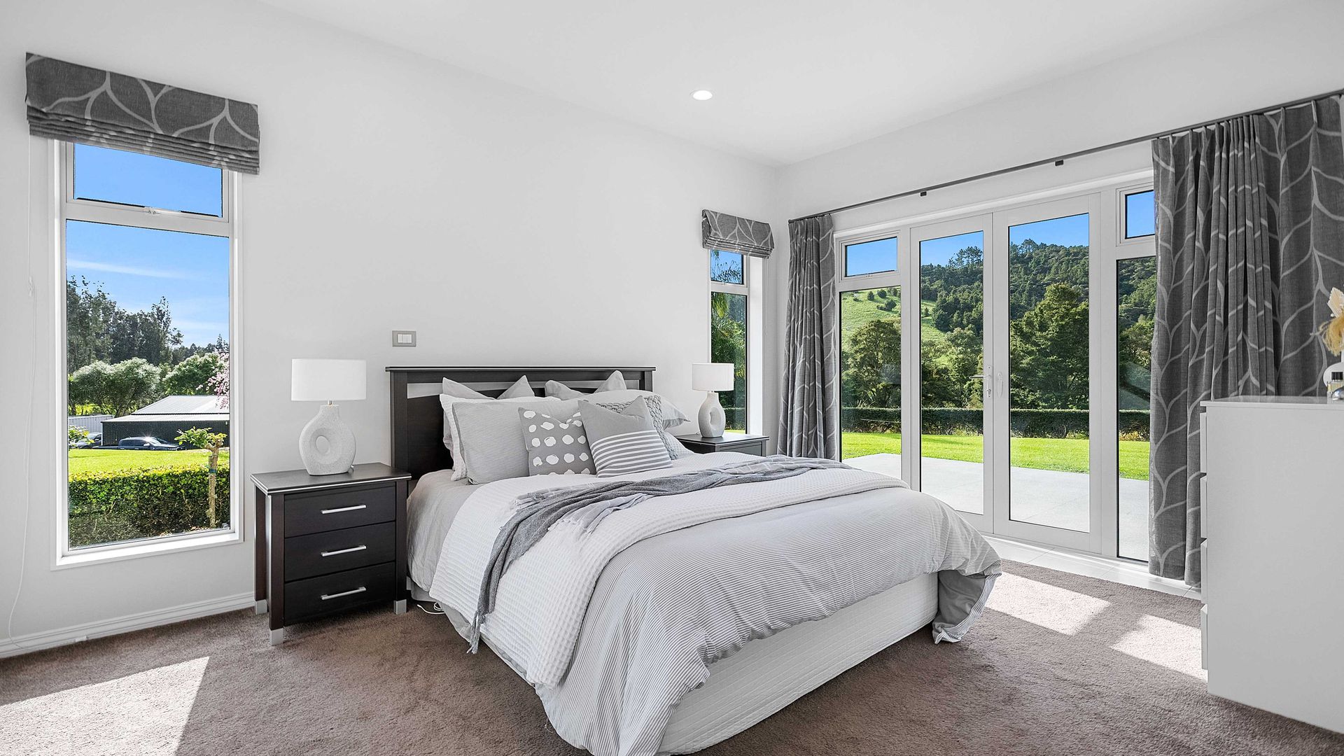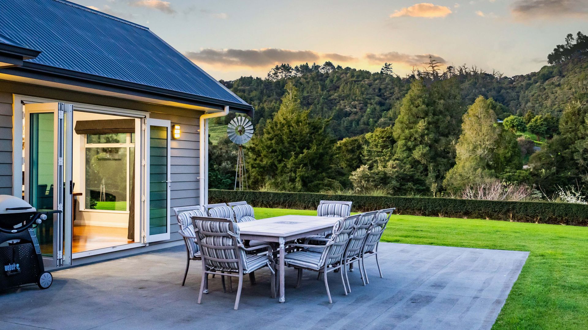 The master suite is private and indulgent with terrace access; the remaining bedrooms are spacious and flexible for family, guests or work. A large laundry and internal-access double garage keep life organised. Outside, sculpted lawns, shelter belts and water create a natural amphitheatre for alfresco living. Kayak and play on the lake, host long lunches under cover, watch the hills turn gold at dusk.