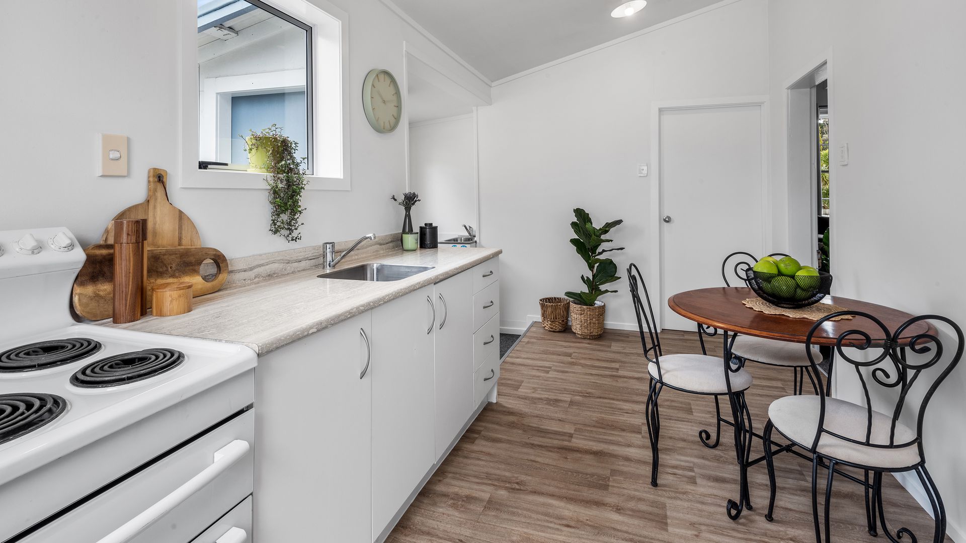The covered front porch is a great place to spend a sunny afternoon, and across the road is a lovely park where the kids can play. Buses are so close, and NorthTec is just up the road. The modern steel garage is an abso0lute bonus - store the toys, run a hobby, or park like a grown-up!